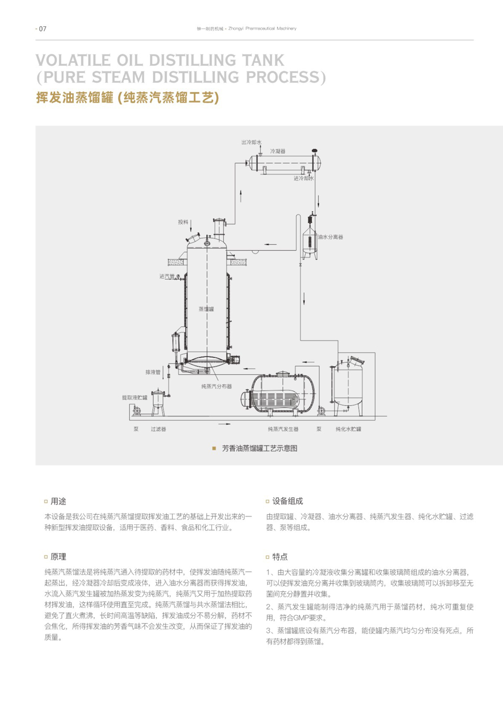 本設(shè)備是我公司在純蒸汽蒸餾提取揮發(fā)油工藝的基礎(chǔ)上開發(fā)出來的一種新型揮發(fā)油提取設(shè)備,適用于醫(yī)藥、香料、食品和化工行業(yè)。